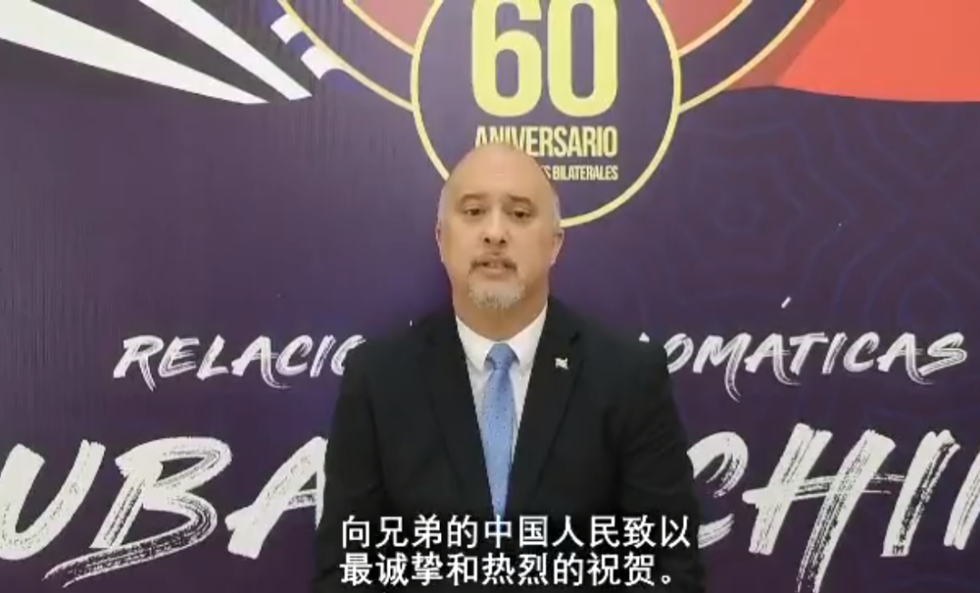 无独有偶,古巴驻华大使佩雷拉也用中文录制了祝贺视频。佩雷拉说,“在中国共产党建党一百周年之际,我谨代表古巴共产党、古巴政府和古巴人民,向兄弟般的中国人民致以最诚挚和热烈的祝贺。”