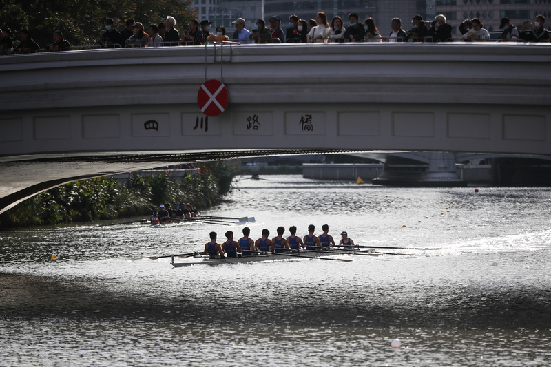 一位老教练曾这么说,“赛艇在中国是寂寞的,几乎所有的比赛都远离市区,普通市民也鲜有体验其中的机会。”而今天,上海,用一种无与伦比的姿态,将这项运动送上了这座城市最美的“舞台”——苏州河,这条横穿上海中心城区,养育了申城百姓的“母亲河”,在这个天高云淡的金秋十月,迎来了首届上海赛艇公开赛(以下简称“上艇”)。