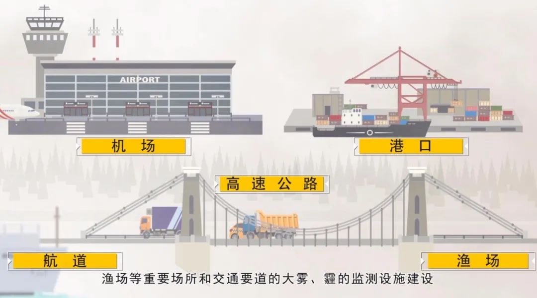 为有效预防雾和霾造成的危害,《气象灾害防御条例》第二十二条规定:“大雾、霾多发区域的地方各级人民政府、有关部门和单位应当加强对机场、港口、高速公路、航道、渔场等重要场所和交通要道的大雾、霾的监测设施建设,做好交通疏导、调度和防护等准备工作。”