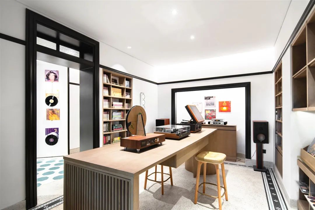 园区内音乐主题书店——黑石M+幸福集荟,店内特设唱片试听室,海内外各式各样的黑胶唱片供大众随意试听。