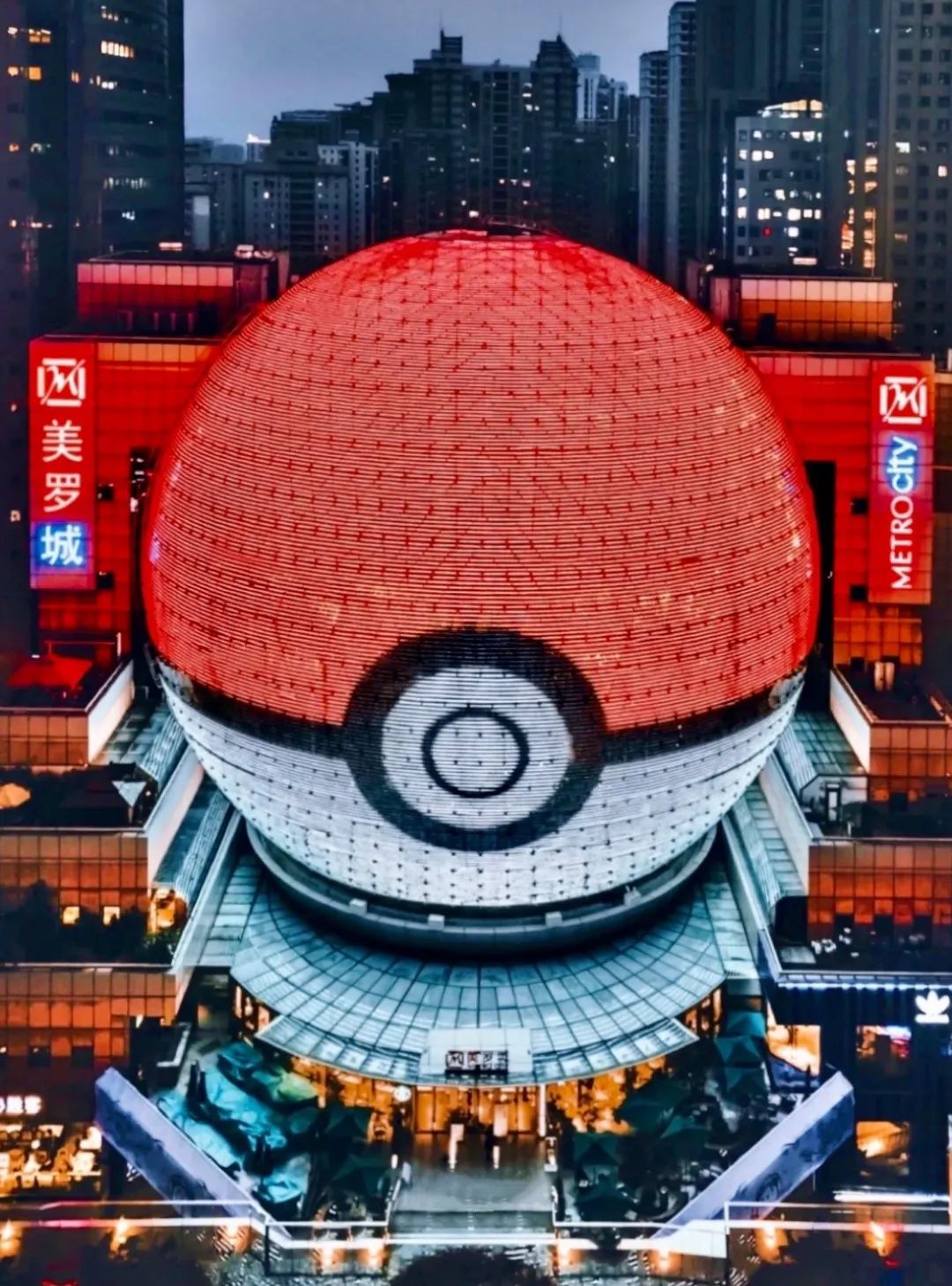 图片说明:美罗城“水晶球”宝可梦精灵球亮屏