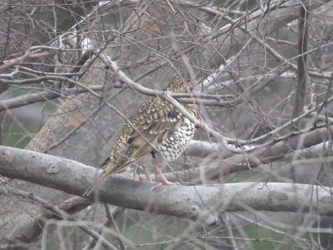 怀氏虎鸫背部羽毛褐色,中间密布黑色斑点。