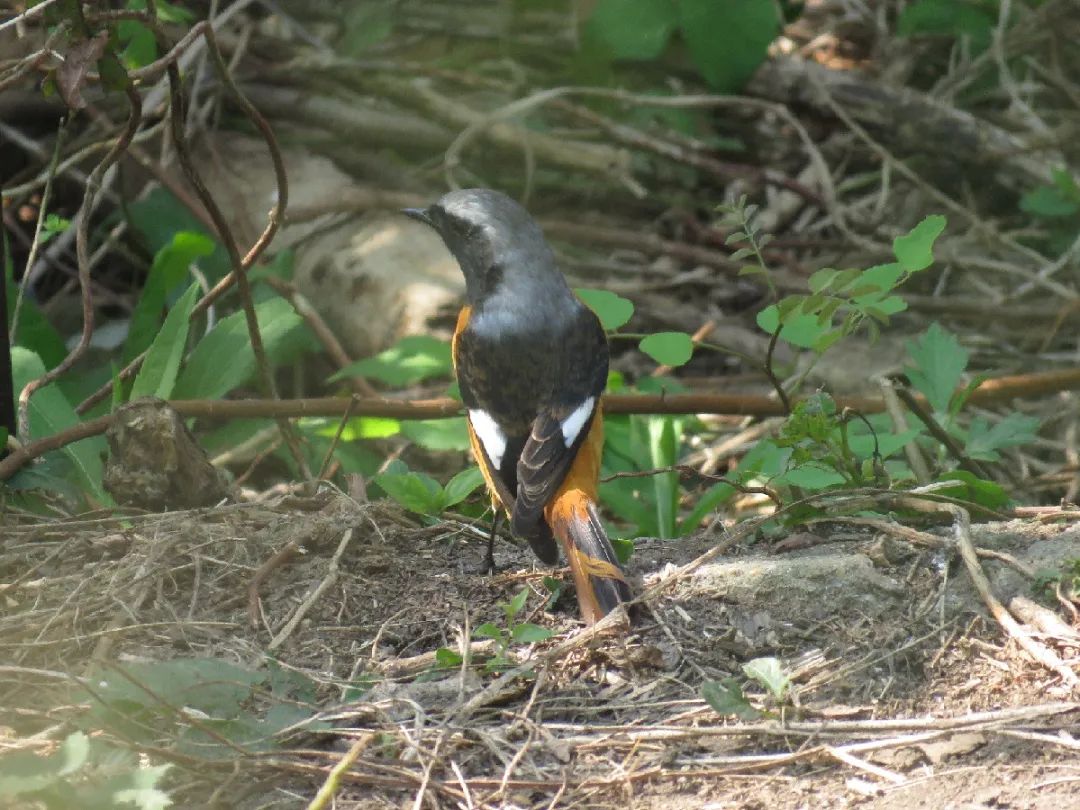 北红尾鸲喜欢在地上或者灌丛中跳跃捕食。