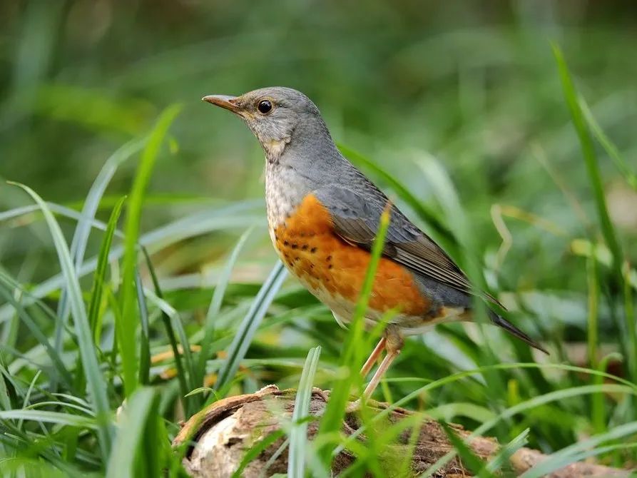 灰背鸫背部为灰色,两胁部为橙黄色。