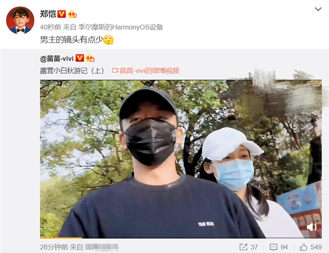 12月4日,郑恺妻子苗苗在个人社交账号上更新名为“露营小白秋游记”视频,视频中她与郑恺为郊游做准备,一起出门采购十分甜蜜,两人恩爱有加。郑恺转发这条视频并调侃:男主的镜头有点少。网友调侃:没把你的镜头剪掉就好了,你可知足吧。