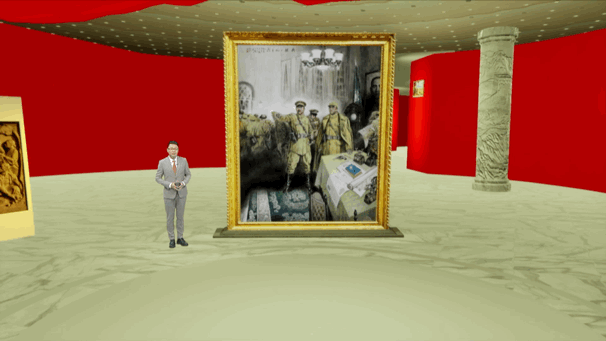 从细节上看,画作中张学良将军一身戎装,左手紧握着电话听筒,右手指向前方,这是发出“兵谏”号令的一瞬,呈现出剑拔弩张的感觉。