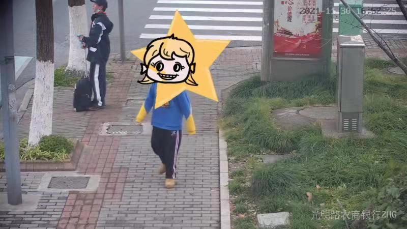 视频画面显示,身穿蓝黄外套的小何,在当日17时许从位于光泽路的小区出发,一路途径光明路、国恒路后,身影在月亮湾附近消失。