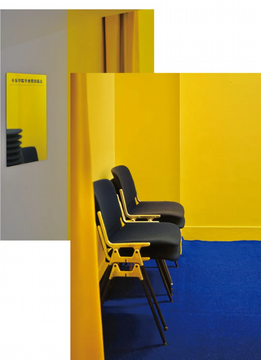 这里还特设了一间黄色墙面、蓝色地毯的房间,提供给“卡乐学院”的毕业生拍摄“毕业照”。