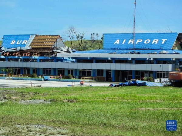 这是12月17日在菲律宾北苏里高省拍摄的遭台风“雷伊”破坏的机场建筑。