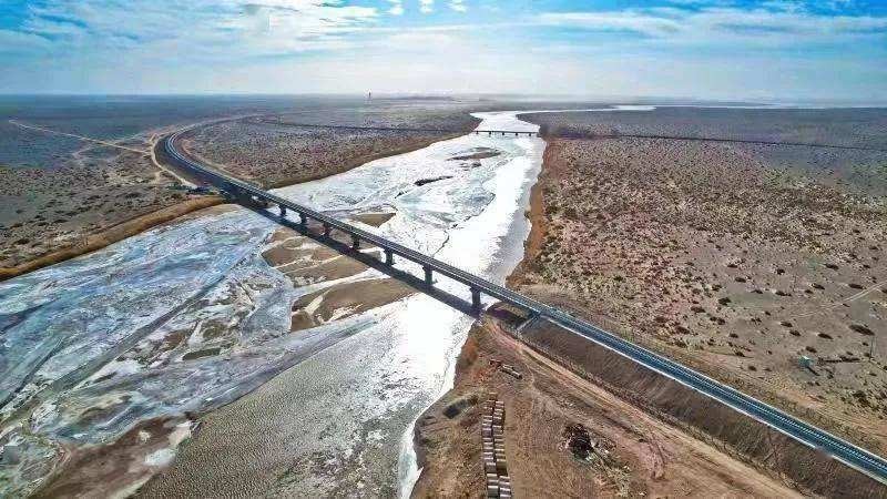 酒额铁路经过巴丹吉林沙漠。建设者们克服低温、风沙等困难,将风沙治理、植被恢复摆在重要位置,努力打造一条穿越荒漠的绿色通道。