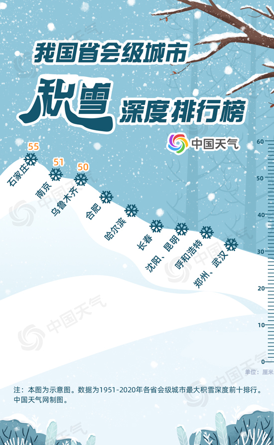 如果说“中国雪窝”以深度让人们震惊,省会级城市积雪排行榜的结果也让人有些意外。