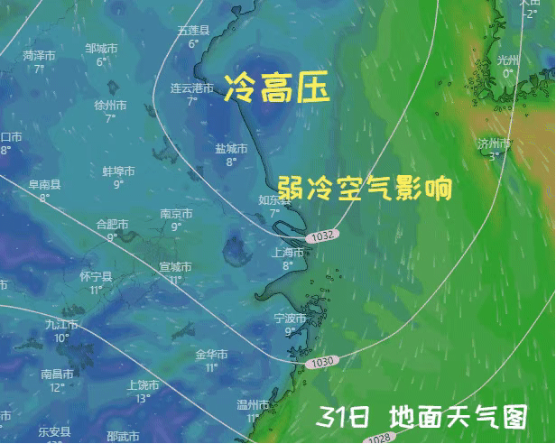 本周五(31日)是2021年的最后一天,北方地区有一股弱冷空气东移,由于路径偏东偏北,对上海的影响不明显,上海气温在2~9℃之间。