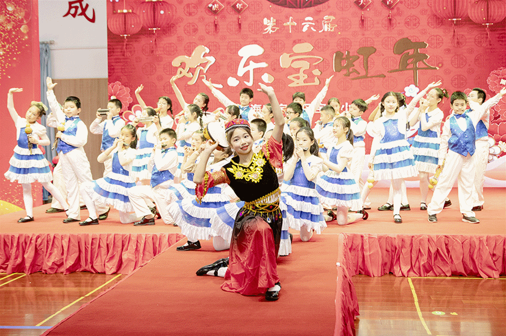 宝虹小学第十六届“欢乐宝虹年”迎新活动在体育馆快乐上演!“欢乐宝虹年”是学校最具特色的传统迎新盛会,活动分萌趣、活力、国风、少年、感恩五个板块,全校师生人人参与,自编、自导、自演、自乐,共同登台分享快乐和自信。
