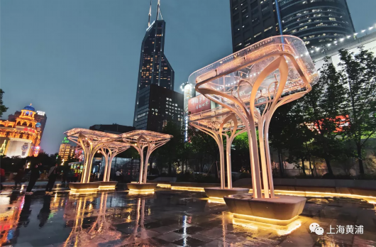 上海城市规划展示馆周边城市更新项目(一期)在重新规划空间结构后,结合服务需求设置了多样化的城市家具,极大程度地提升了空间的舒适度,同时将玉兰花、梧桐叶、地标建筑等本土文化元素巧妙的融入“可阅读”的城市家具之中,通过设计语言将艺术带进城市公众生活,让城市家具成为公共文化艺术的载体,让民众在城市转角遇见艺术之美。