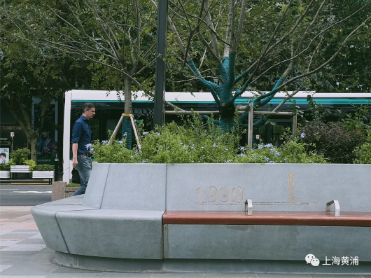 整个区域内的绿化边界都是可供人们休憩的座椅,在曲线优美的座椅靠背上植入了不同时期建成的优秀建筑,将它们通过预制镶嵌工艺印刻在座椅靠背上。从人民大道至九江路,从座椅上可以寻觅上海十大地标建筑,展示上海作为“世界城市会客厅”面向未来的发展活力。