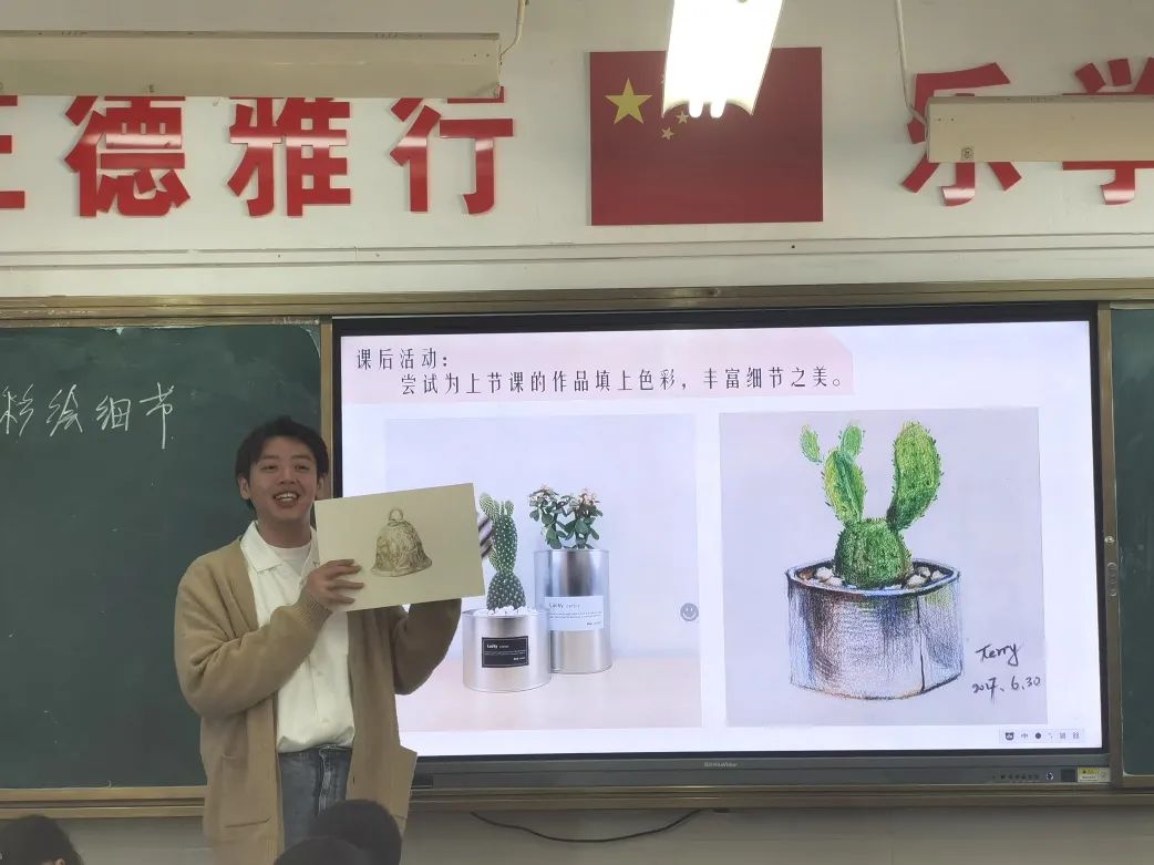 作为美术学科的支教教师,冯拓营积极投身玉龙中学七至九年级的美术学科教学工作中,紧跟本校美术教师的课堂教学,与教师们共同研究在“双减”背景下如何规范美术学科课堂教学,并利用单元教学模式提高美术课堂教学效率。