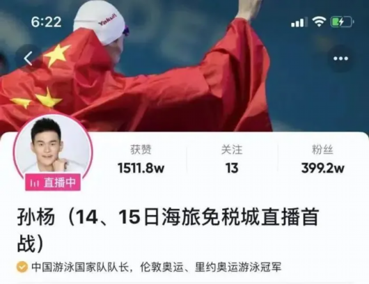 直播5小时卖出1500万,“孙杨带货”上热搜!这些体育明星也曾参与过直播活动→