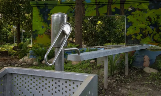 位于乐颐生境花园的最南端,紧邻南渔浦河道,为园区保护乡土动、植物的核心区域,这里安装了包括解决鸟类饮水的“静水流觞”,与大自然融为一体的“自然之眼”,还设有人工手动压水泵。