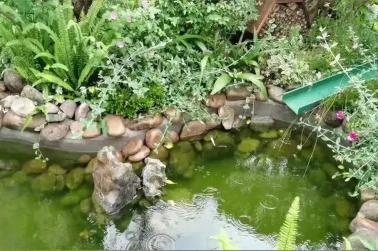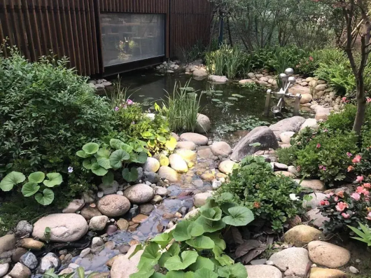 花园还通过铺设水渠和管道将屋顶雨水汇集到池塘,供鸟类饮水及植物浇灌。
