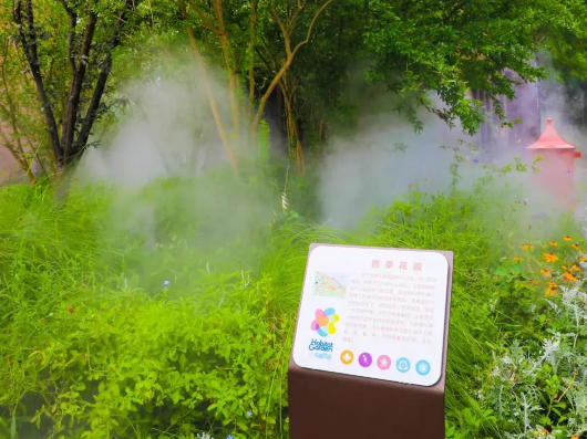 花园还配备了远程智能雾化灌溉系统,实现远程土壤环境检测,以植物实际需水为依据,以信息技术为手段,提高灌溉精准度,增进水资源利用率。