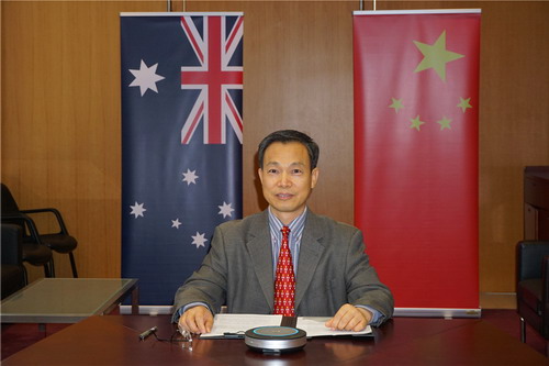 2022年1月28日,驻珀斯总领事龙定斌与西澳中华会馆会长陈挺进行线上交流,向西澳州华侨华人致以新春问候和祝福。