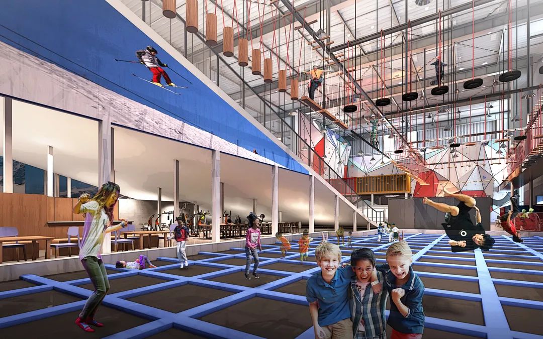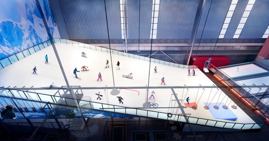顽酷运动工厂场馆面积近4000平方米,除了滑雪还有高空平衡木、攀岩、蹦床等多项运动,一站式满足运动健身、休闲娱乐等多种需求。