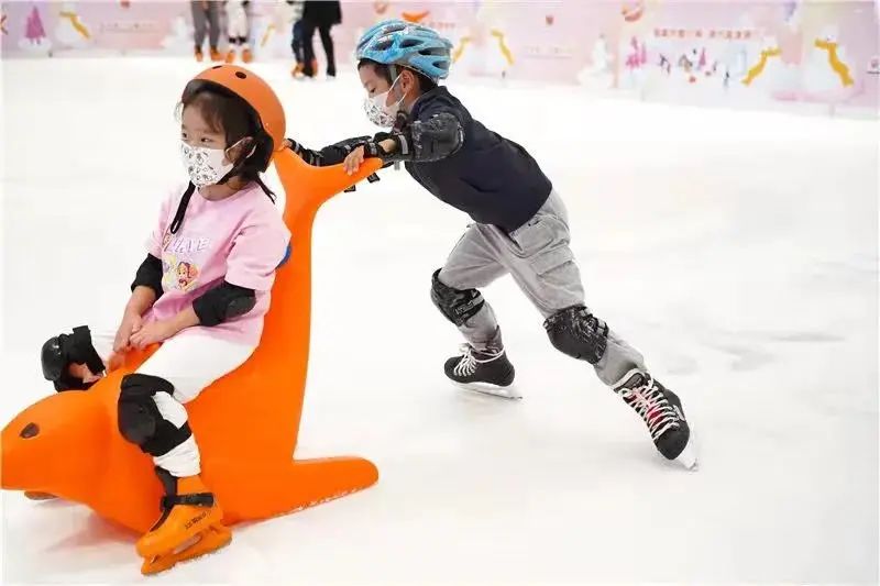 冰乐园里全新的沉浸式互动场景、多功能的新式亲子空间,特别适合家长们带娃来体验。乐园设施“萌”气十足,还有可爱的小海狮扶手作为“氛围组”。穿好冰鞋、戴好护具,宝贝们就可以与“萌系动物”在冰面共舞,旋转、跳跃、前行、转弯,尽享冰上欢乐时光。