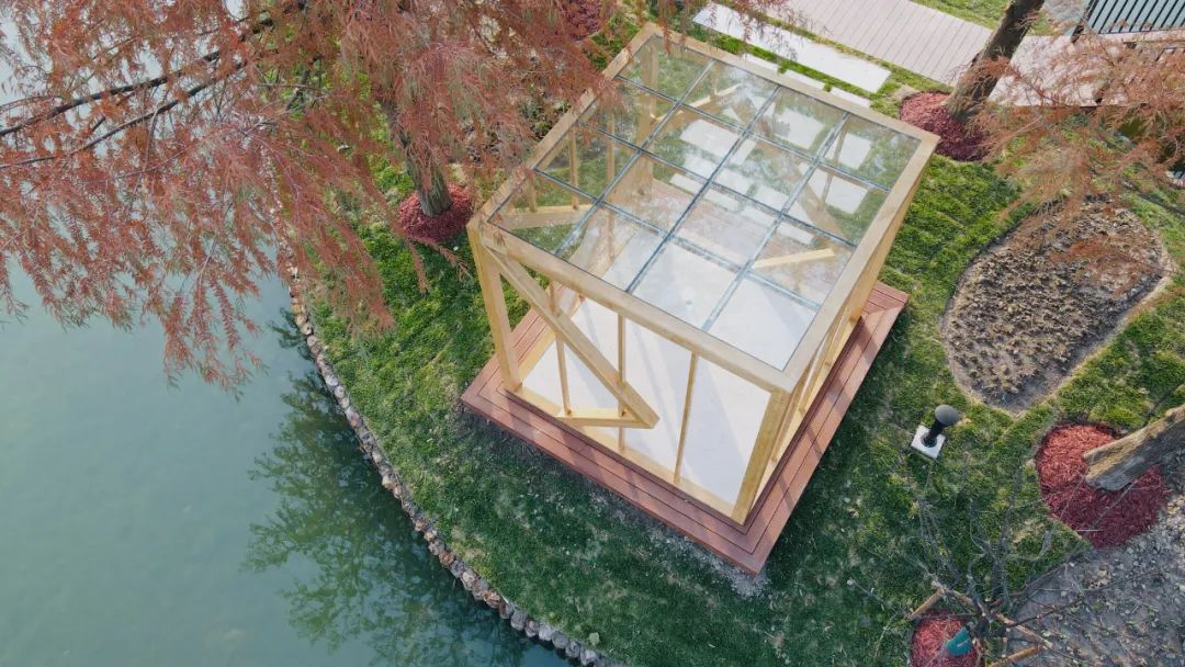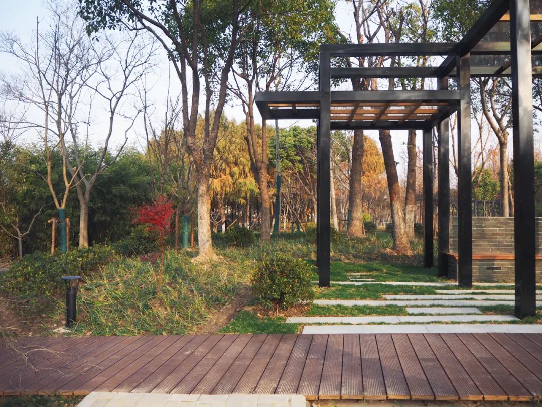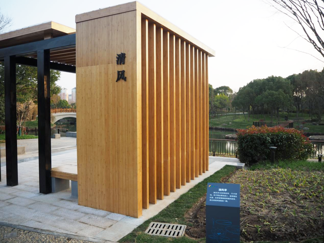 凝香亭这四座景亭延续公园原有建筑风貌,采用低碳环保型新材料工程竹,肌理自然漂亮,与公园景观相映成趣。