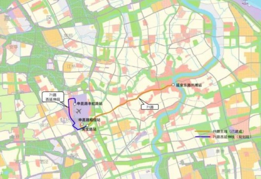 据专项规划显示,71路中运量公交西延伸工程将延伸至虹桥商务区核心区,即从吴宝路站出发,沿沪青平公路—华翔路—申兰路—申长路—天山西路—申昆路行驶,到达申昆路丰虹路终点站。