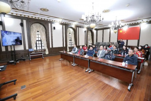 市体育局副局长罗文桦、市冰雪运动协会会长严家栋等共同观看赛事直播