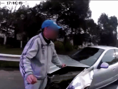 近日,一辆银色轿车突然失控冲向对向车道,直到撞到护栏才停下,过了好一阵驾驶员才踉踉跄跄地下了车。
