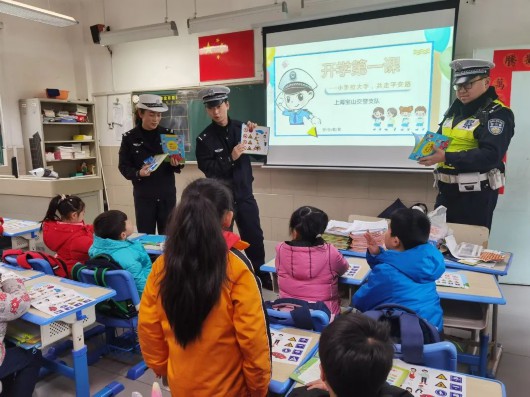 返校当天,宝山交警共同联合教育部门和中小学、幼儿园等单位,组织上好“开学第一课”,深入推进交通安全进课堂,现场给孩子们发放交通安全漫画读本并普及交通安全知识,不断提升孩子们的交通安全意识及守法意识。