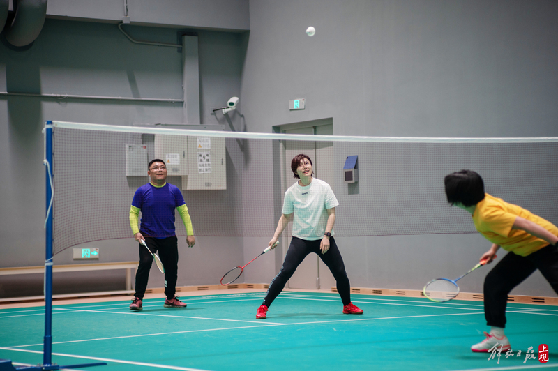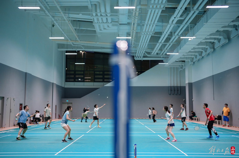 “万体汇”有33片羽毛球场地,占据运动中心整体面积的半壁江山,因为老幼皆宜的运动属性,羽毛球也是人气最旺的体育项目。