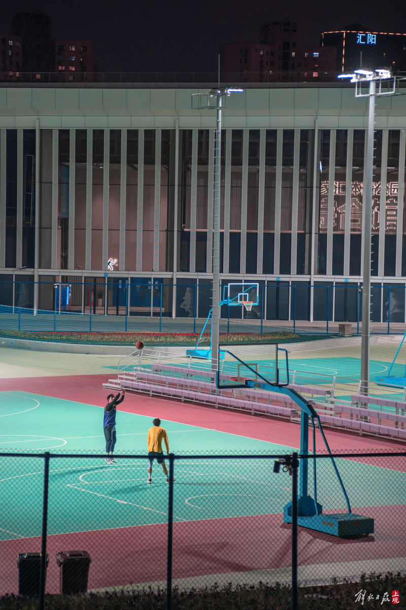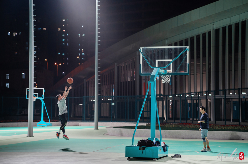 据场地的工作人员介绍,篮球场开放分为预约包场和散客门票两种形式,只要15元就可以进场畅打,价格十分亲民。在现场有不少专程坐地铁来的学生党轻车熟路地扫码进场打球。