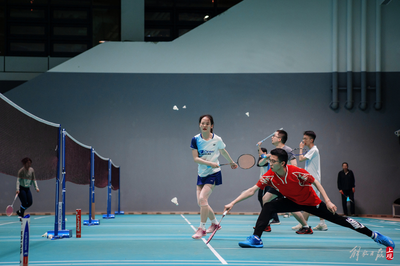 记者下午六点在场馆中看到,80%以上的羽毛球场地已经“花落各家”,其中不乏高手对决,画风精彩激烈。
