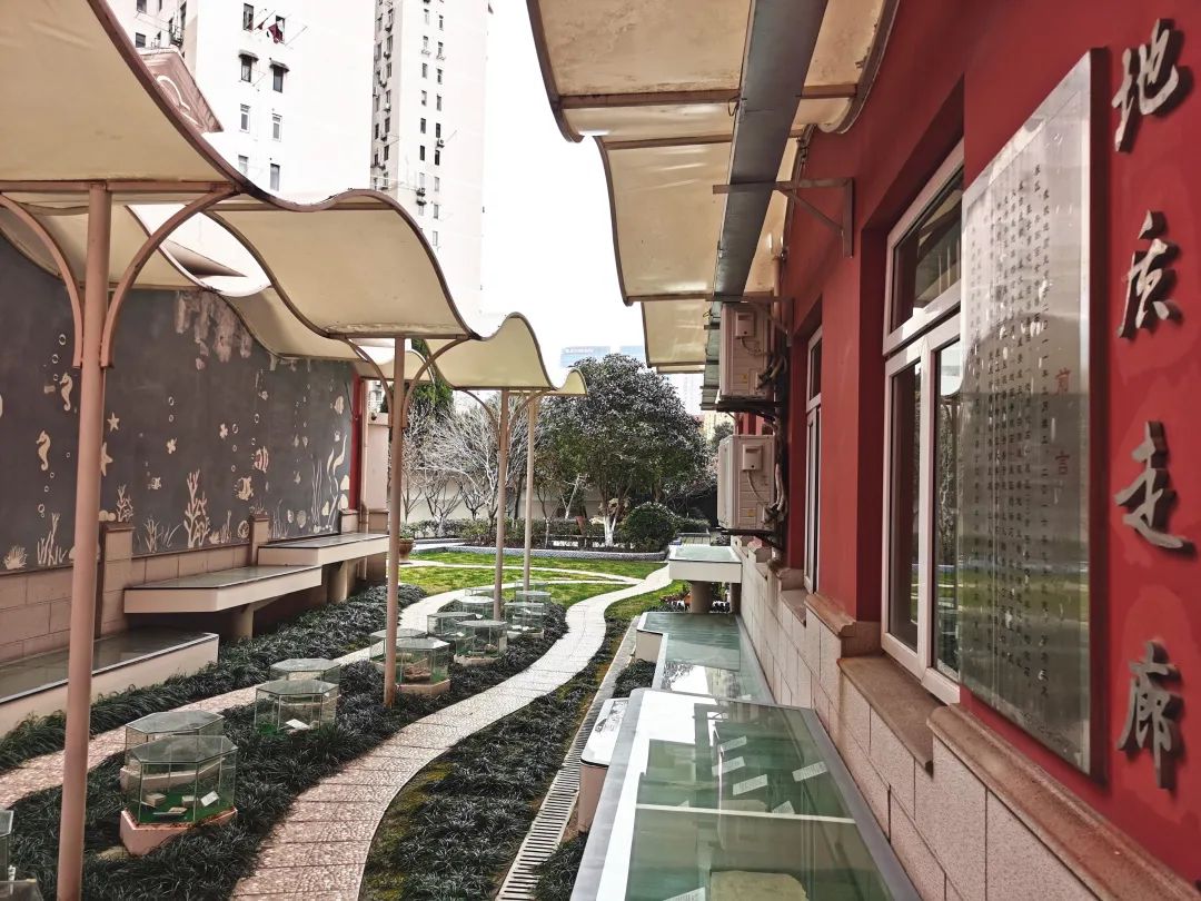 穿过仙霞高级中学的操场和教学楼后便来到了地质博物馆的室外展示空间——地质走廊。