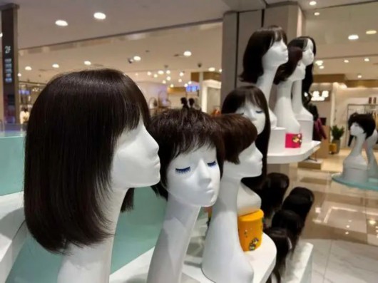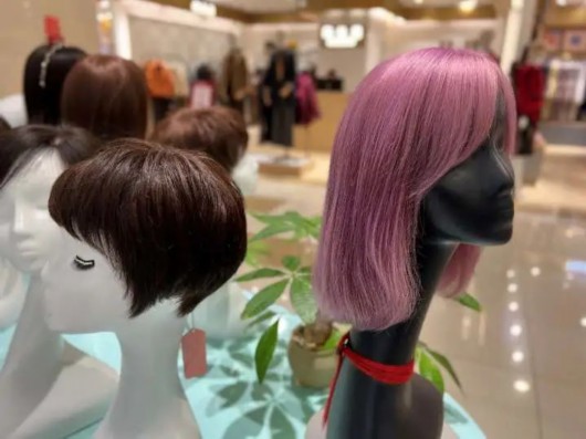 一般来说,这家专柜一个月能卖出30~40顶假发,旺季时一天卖五六顶也很正常。“有个顾客一个月买了4顶假发,一顶‘埃及艳后’一刀切中长发,一顶不对称短发,还有两个假发片。”珊珊说,她听到顾客说的最多的话就是:一旦戴过假发,不戴就不习惯了。
