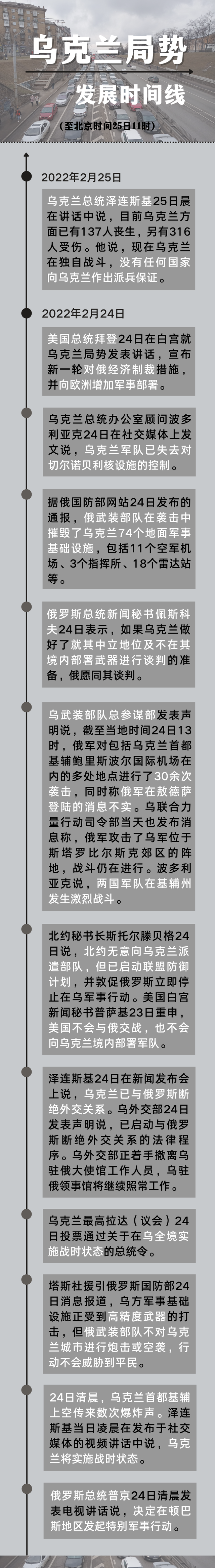 自俄罗斯军队24日晨在顿巴斯地区发起特别军事行动以来,俄军对多处地点进行了袭击。俄方表示,如乌克兰做好就其中立地位及不在其境内部署武器进行谈判的准备,俄愿同其谈判。以下为截至目前的重要节点时间线: