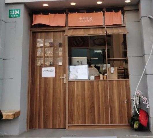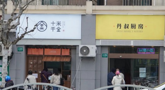 与“丹叔厨房”相邻的“十米千金”。据悉,老板是从台中市来的小哥哥,在“丹叔厨房”落户仙霞路后,Willy也跟着在隔壁盘下一间店铺,经营充满手作温度的古早味麻薯。