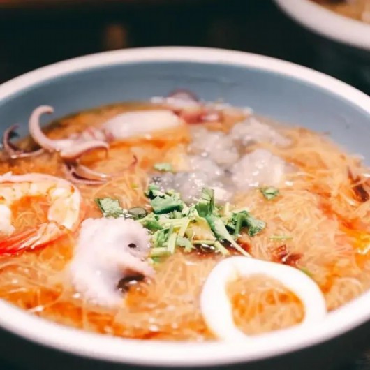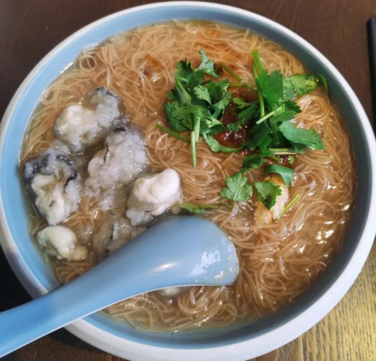 蚵仔面线是台湾传统小吃中极具有特色的一种,主要原料为蚵仔(小牡蛎)和面线。丹叔家的蚵仔面线汤底鲜美,勾芡过的面线细腻嫩滑,可用勺食或直接捧碗抿。天冷时,趁热吃下马上能让身体变得暖乎乎。当然,你也可以搭配大肠,就变成了大肠+蚵仔双宝面线。喜辣的朋友,记得加点乌醋、辣椒调开,变换风味更升一级。