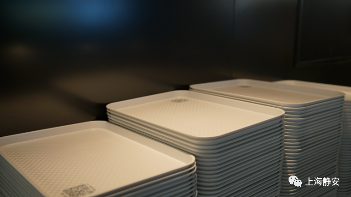 开始就餐前,员工首先要绑定一个托盘。托盘正面印有专属二维码,底部则嵌有感应装置。