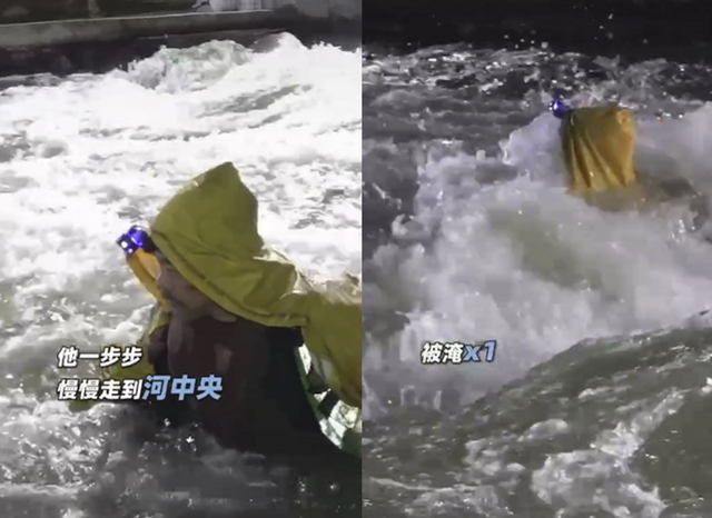 因此,他提出到河中央进行拍摄,从视频中可以看到整个河道长达50米并且水流速度非常快。刘青云依旧坚持一步步走向河中央,在拍摄过程中他也因为水流速度过快导致站不稳而数次被淹。拍摄顺利完成,他上岸时已经浑身湿透。