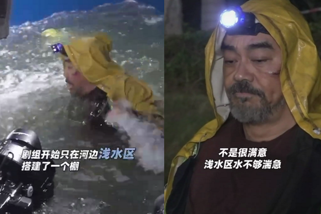 近日,刘青云新戏开机,电影官博在某社交平台上发布了一条拍摄花絮。视频中刘青云头戴探照灯在水中游泳,刚开始剧组只是在河边的浅水区搭了一个棚。在拍摄之后,刘青云亲自到监视器前回看,发现水流不够湍急,对效果不是很满意。