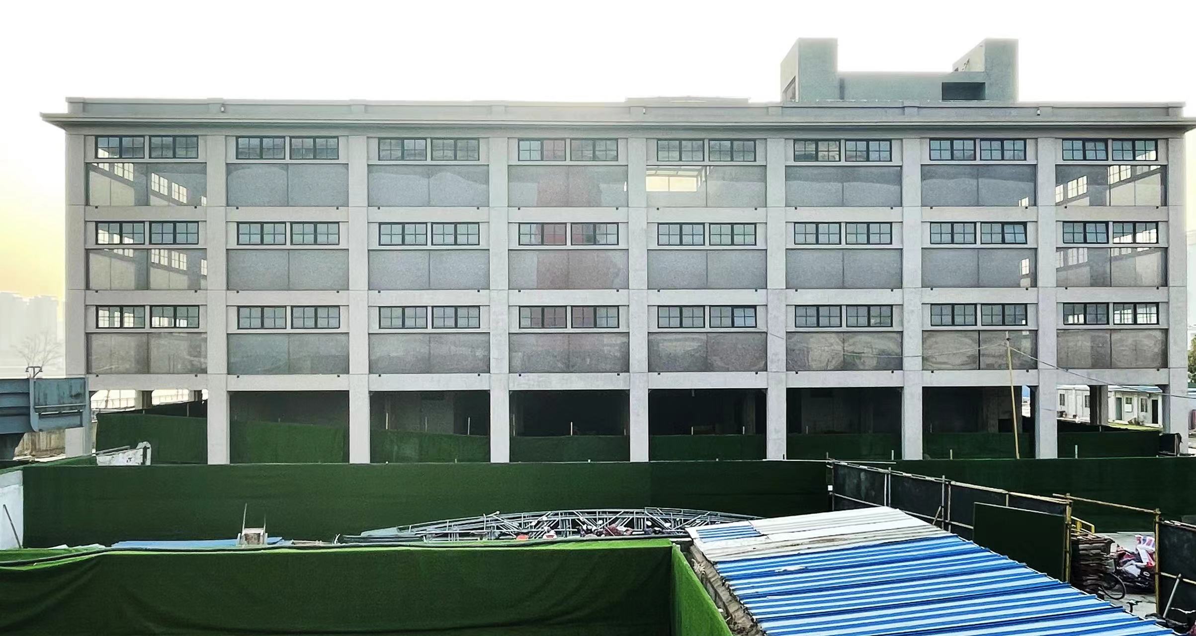 永安栈房的外立面彰显了现代主义建筑的结构理性一面。砖墙被填充在结构柱之间的空隙里,墙面略微后退,从而将外凸的框架结构体系暴露在外。建筑外立面由此被梁柱分隔成一系列网格,其间是分隔墙和水平长窗,韵律感十足。隔墙高度与长窗高度比例约为1:2,两者由浅色混凝土窗间墙交叉分隔形成水平线条,并同竖向窗间墙连为一体。隔墙表面采用灰色水泥拉毛处理,以低廉的成本创建出厚重朴实的质感。水平长条格式钢制高窗的尺寸为5.4米×1.2米,窗台高约2.4米,每扇窗由16片550毫米×500毫米的窗扇构成,窗扇上下开启,充分考虑到物流产业对货物隐私、避免强光和自然通风的复合要求。建筑顶部于女儿墙处施以简洁流畅的横向线脚,通过向内层层收分过渡到外梁上端,点缀以略微高起的山花墙面和细长的避雷针,以略显活泼的天际线统领整栋建筑的古朴和厚重。