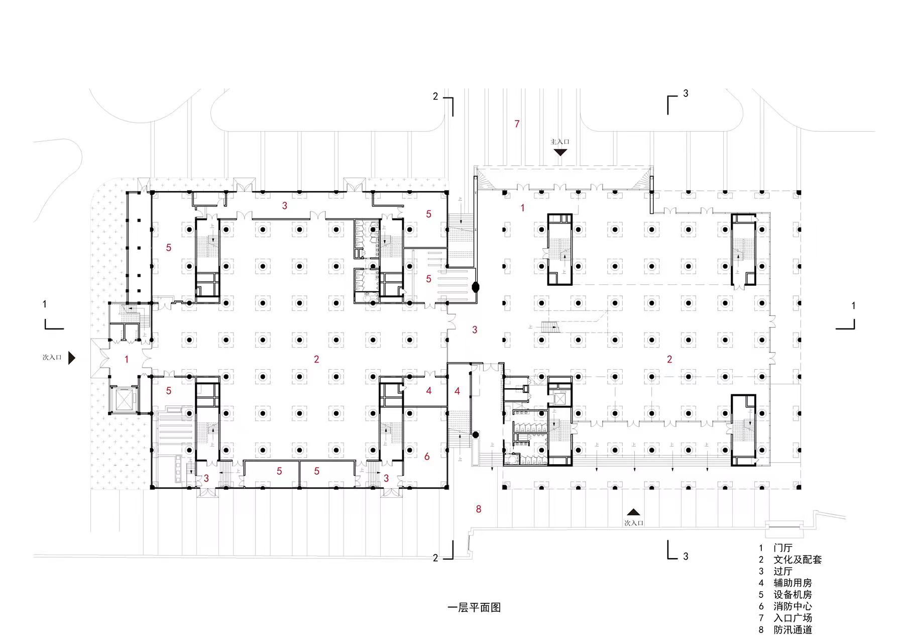 在入口设计上,新的混凝土巨柱尤为醒目。建筑师分解了八角形棱柱形式,得到曲线形的结构符号,并以其夸张的尺度唤起人们对于宏大工业叙事的记忆和身份认同。设计扩展了二层平台以联通两侧建造,重塑间隙空间作为交通枢纽的历史定位,并赋予其最好的景观平台身份。
