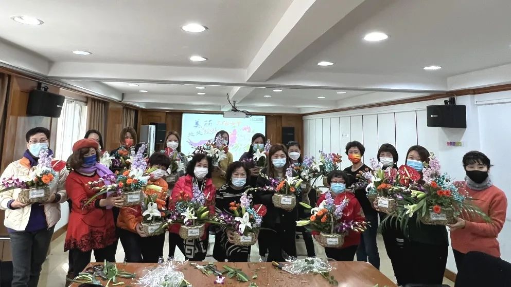 3月7日上午,定海路街道第三睦邻中心组织了一场丰富多彩的三八妇女节节庆活动,吸引了不少社区阿姨前来参加,大家以手工插花的方式展现别样风采。