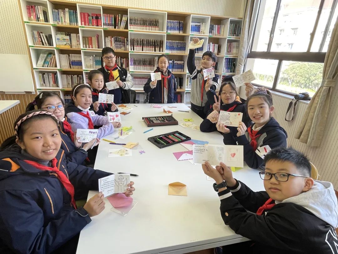 升旗仪式开始,同学们为医护人员送上了自制贺卡,一笔一画流露真心,一言一语传递真情。8名医护人员收到这份礼物都非常感动,护士长鼓励小朋友要勇敢、坚强,一起战胜疫情,向着美好的未来前进。学校五(1)中队的徐昊允同学代表全体少先队员向医护人员致敬,她还表示将来也要做一名白衣天使,救死扶伤。