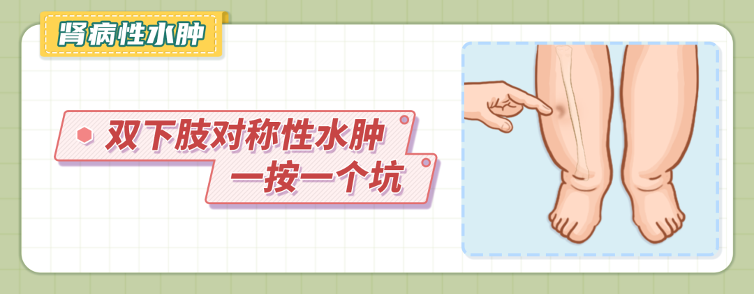 肾病性水肿还有一个比较独特的特点:如果在小腿骨头前的皮肤进行按压,会出现一按一个坑的现象。