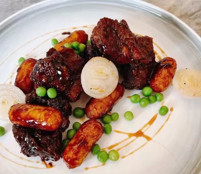 店里的“脆皮小牛肉芝士年糕”,也很受大众喜欢。牛肉鲜嫩入味,口味偏甜,年糕香脆软糯入口,很适合上海人的口味。