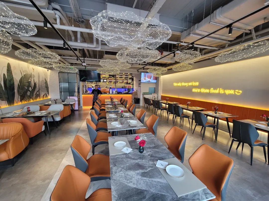 坐落于长宁ArtPark大融城庭院一层的酒吧式餐厅,屋外屋内都设有餐桌,屋内优雅的就餐环境,从中午的披萨西餐,到下午的咖啡甜点,再到晚上的牛排红酒,绝对是上班族们休闲解压的好地方。